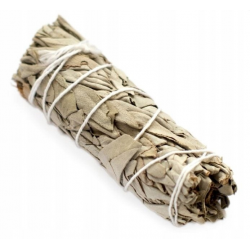 Ręcznie wiązany pęczek liści białej szałwii (Salvia apiana), cenionej za właściwości oczyszczające powietrze i neutralizujące negatywną energię. Idealna do medytacji i rytuałów duchowych.