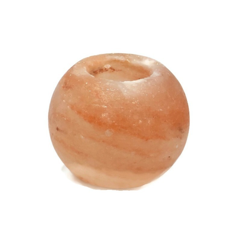 Świecznik wykonany jest z soli himalajskiej.